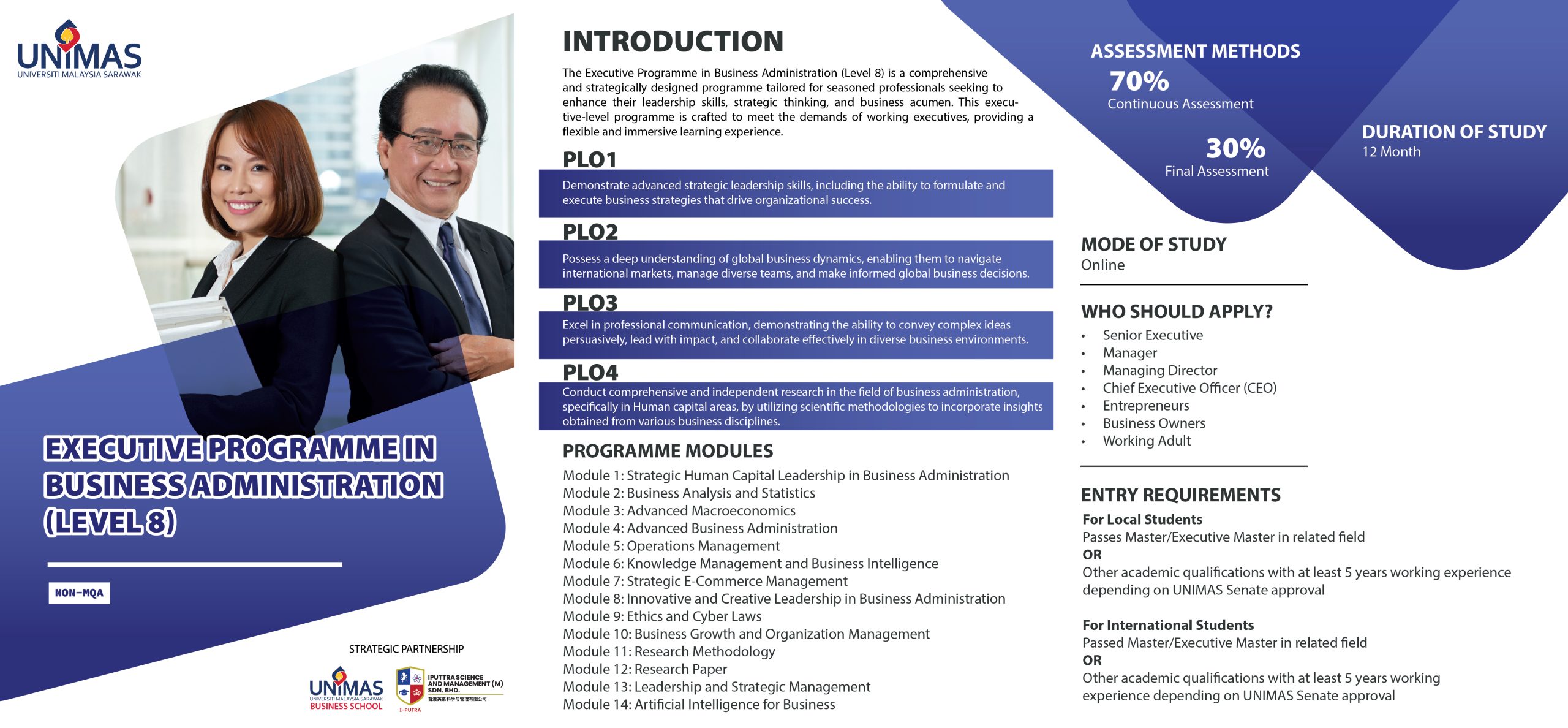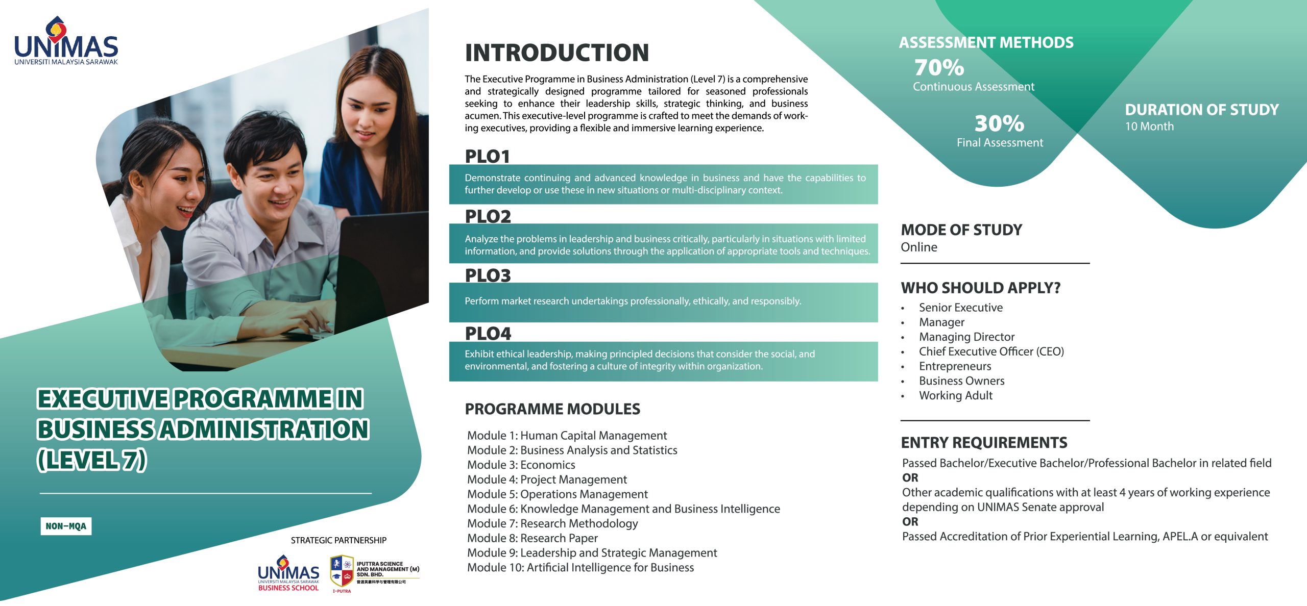 As the Strategic Partner for UBS, IPUTTRA Science and Management College took on the responsibility of running UNIMAS Professional Executive and Doctorate Programmes. These programs were specifically designed to cater to the evolving needs of working adults seeking formal certification.